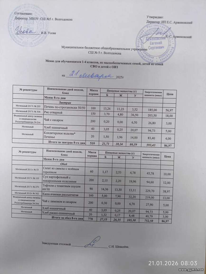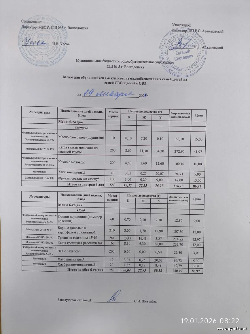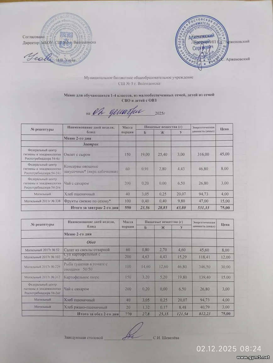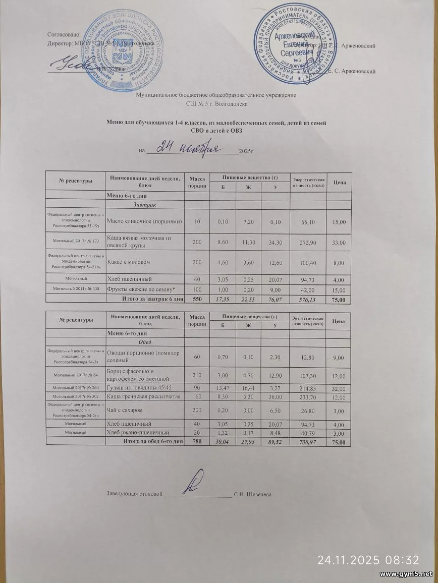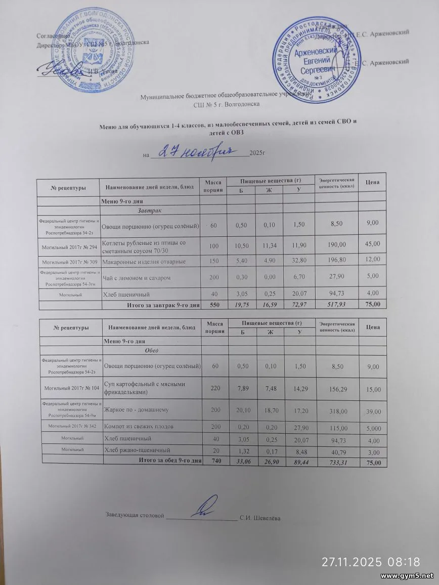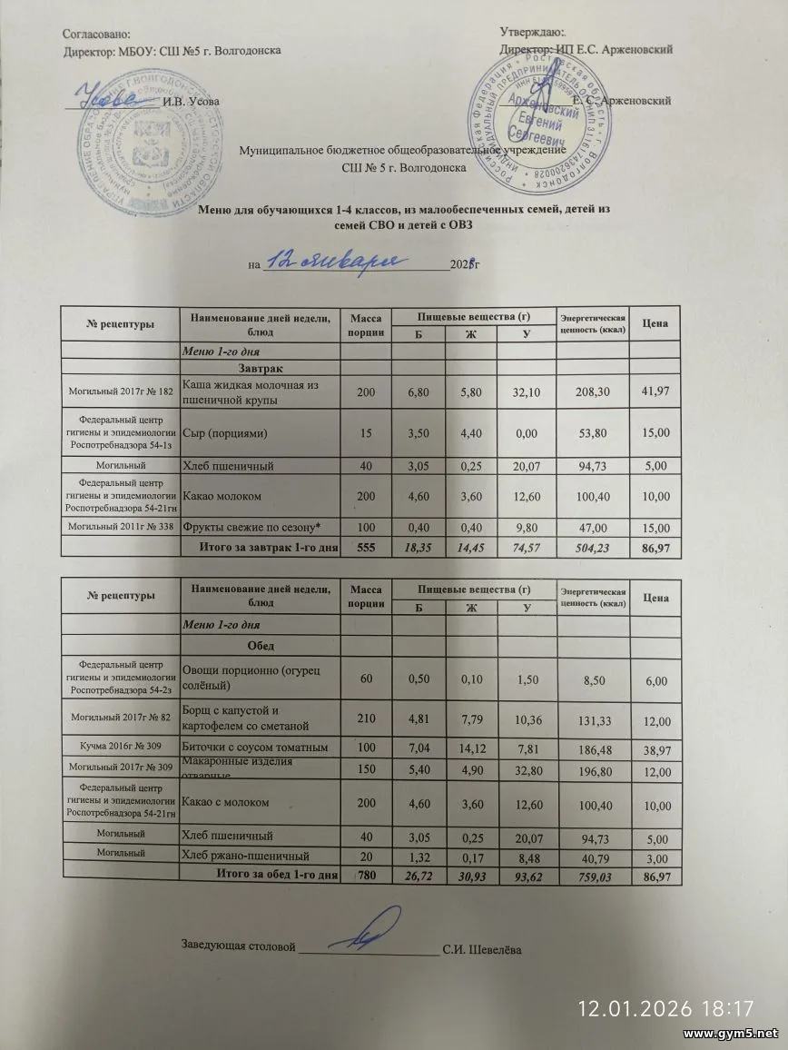 Организатором питания в МБОУ СШ №5 г.Волгодонска является ИП Арженовский Е.С.