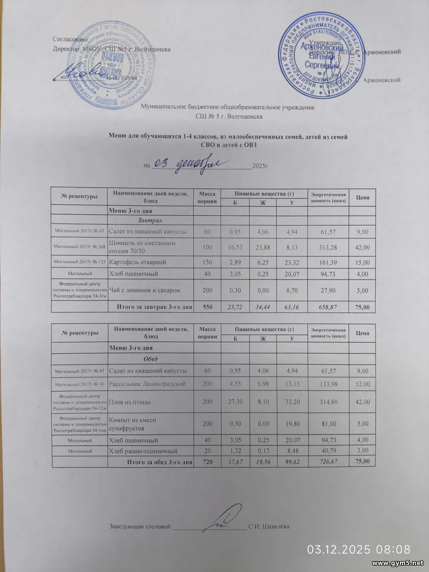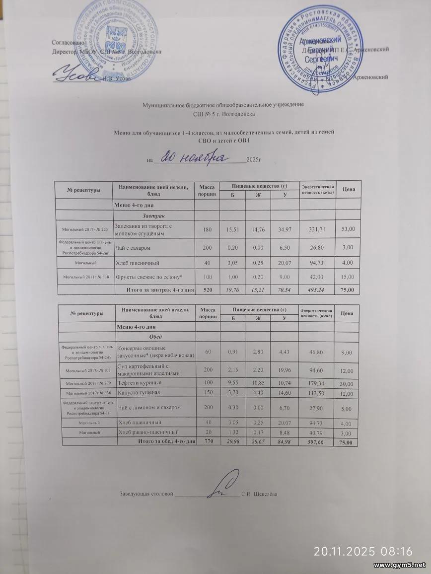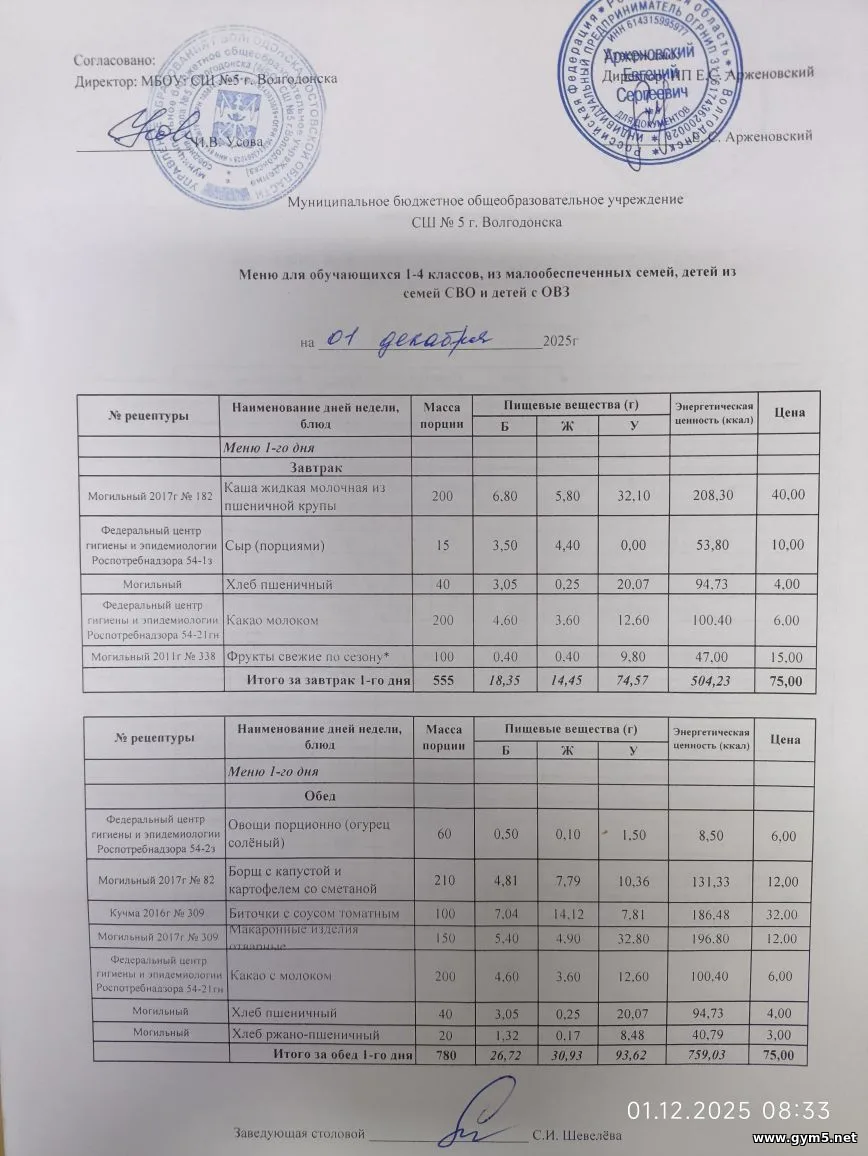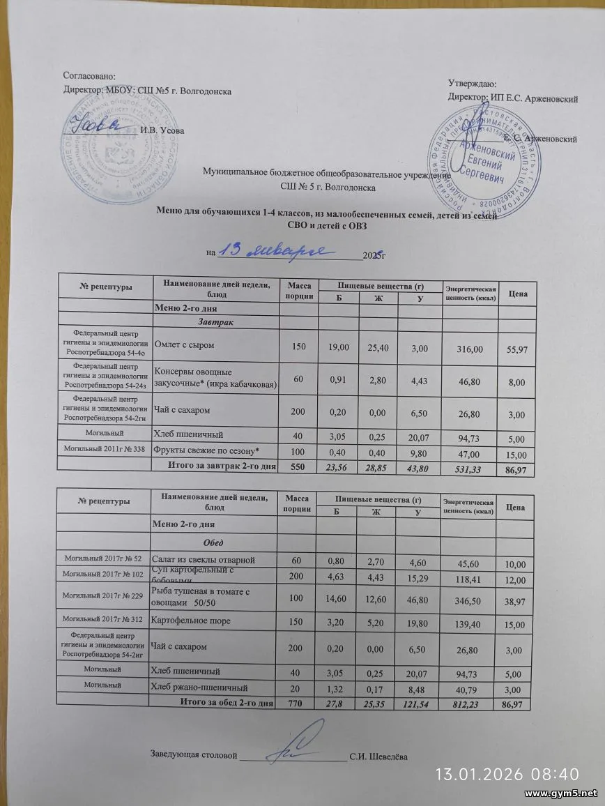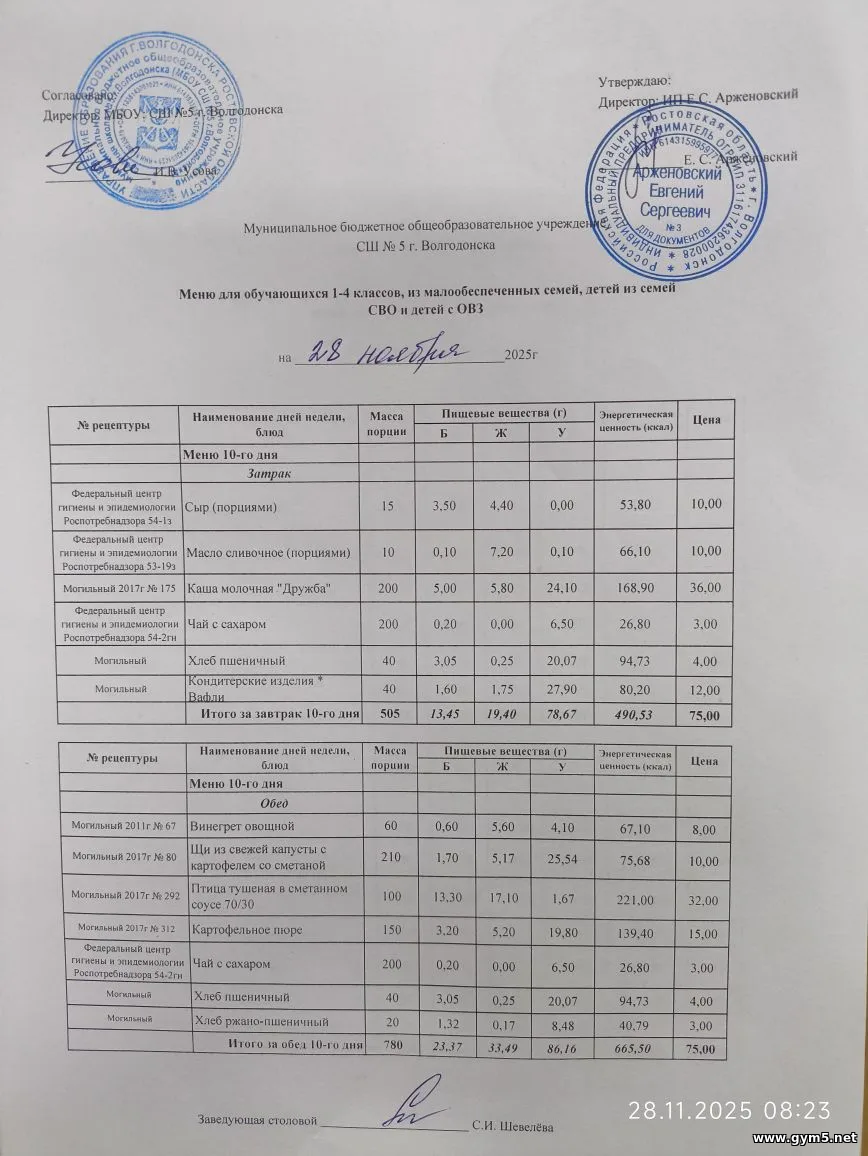 Организатором питания в МБОУ СШ №5 г.Волгодонска является ИП Арженовский Е.С.