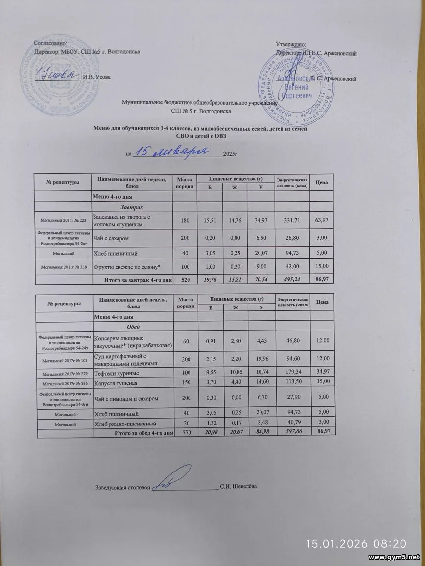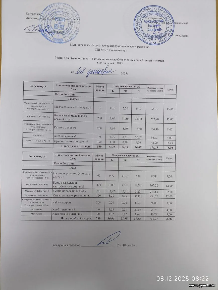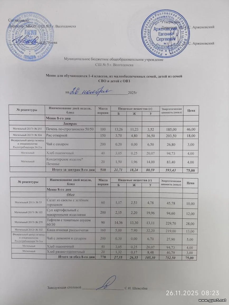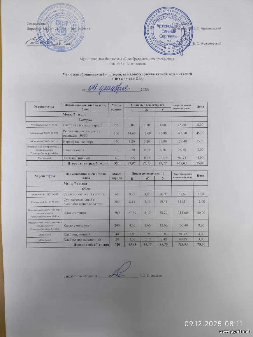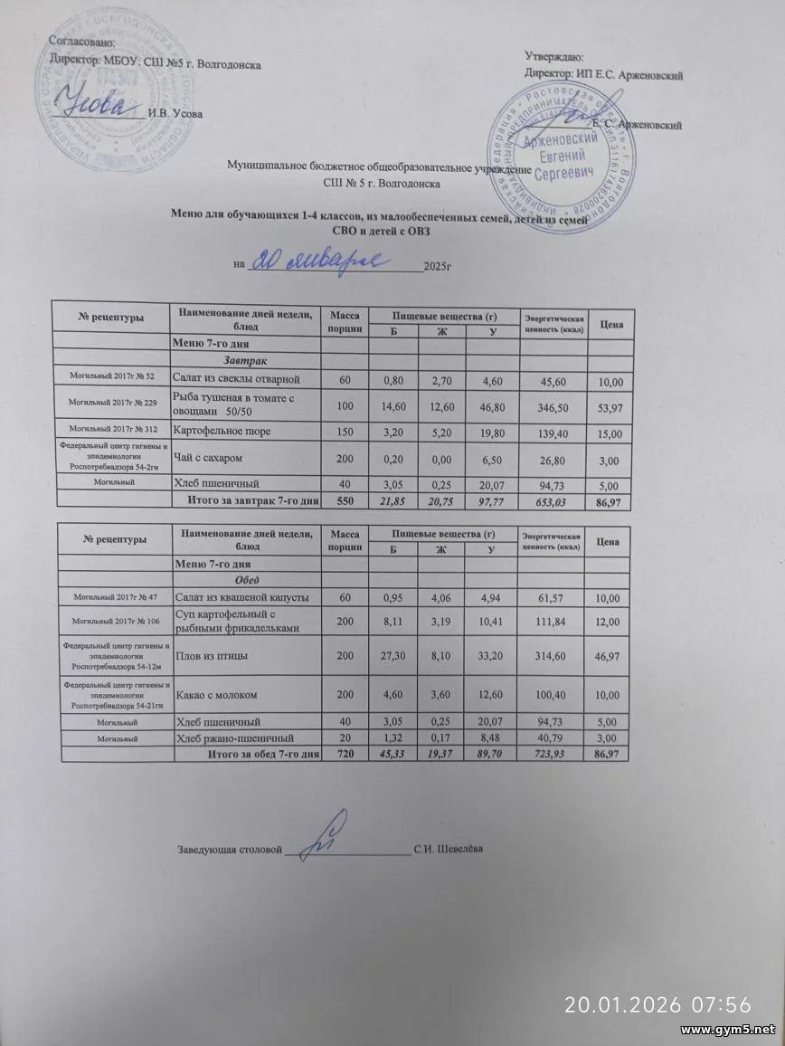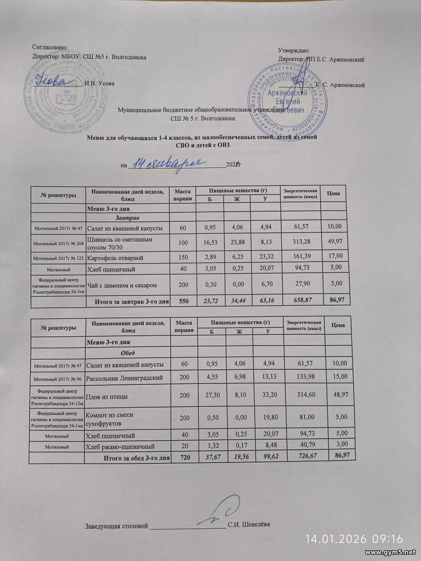 Организатором питания в МБОУ СШ №5 г.Волгодонска является ИП Арженовский Е.С.