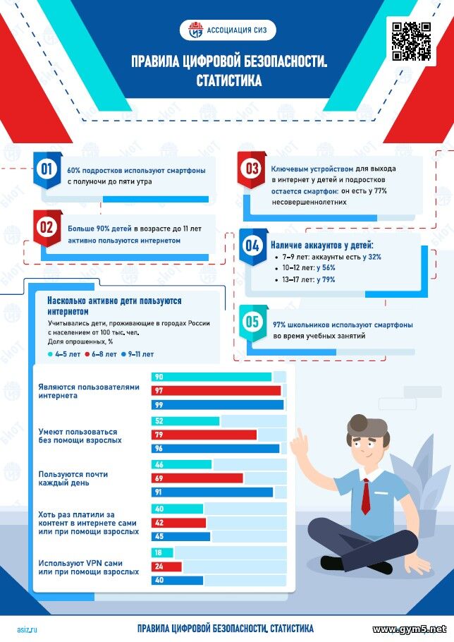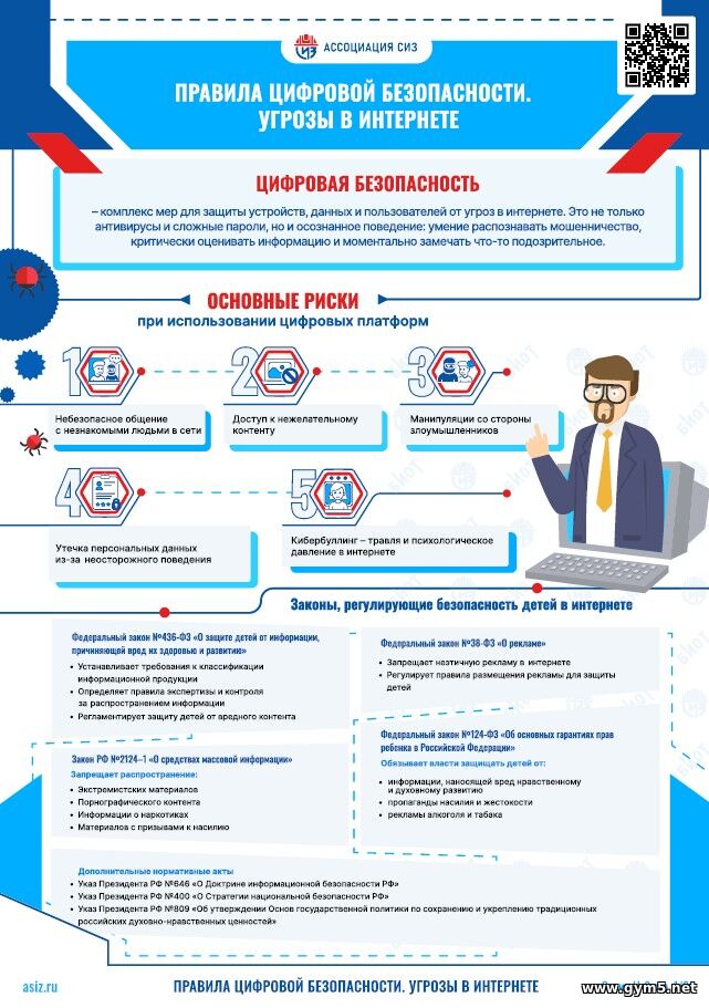 Серия инфографик по цифровой безопасности в сети «Интернет» включает 8 наглядных модулей по информационной безопасности для детей, родителей и педагогов: