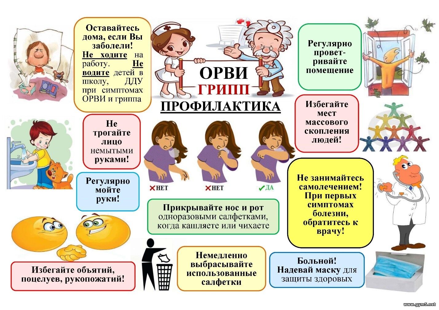 Грипп и другие острые респираторные вирусные инфекции (ОРВИ) находятся на первом месте по числу распространения среди людей. Это связано с тем, что вирусы постоянно меняют свою структуру, и новый, изменённый вирус, способен поражать человека вновь. В группе риска: – дети; – люди старше 60 лет; –·больные хроническими заболеваниями лёгких (бронхиальная астма, хроническая обструктивная болезнь лёгких и др.); –·больные хроническими заболеваниями сердечно-сосудистой системы (врождённые пороки сердца, ишемическая болезнь сердца, сердечная недостаточность); – больные хроническими заболеваниями печени (цирроз); – больные с хроническими заболеваниями почек; – больные с иммунодефицитными состояниями; – беременные женщины; – медицинский персонал; – работники общественного транспорта, предприятий торговли, общественного питания и др. Как происходит заражение вирусными инфекциями Грипп и ОРВИ очень заразны. Инфекция передаётся от больного человека здоровому с невидимыми капельками слюны или слизи, которые выделяются во время чихания, кашля и даже во время разговора. Кроме того, вирусы передаются через грязные руки. Основными симптомы гриппа и ОРВИ являются: – высокая температура (38–400С); – озноб, общее недомогание, головная боль, боли в мышцах (ногах, пояснице), слабость, упадок сил; – ухудшение аппетита (тошнота, рвота). Признаки интоксикации продолжаются около пяти дней. Если температура держится дольше, возможно, возникли осложнения. Основные осложнения при гриппе: – пневмония (вероятность летального исхода 40%); – энцефалиты, менингиты; – грипп у беременной женщины может вызвать осложнения беременности, патологии плода; – обострение хронических заболеваний. Заболевший человек должен оставаться дома и не создавать угрозу заражения окружающих. Лечение заболевания проводится под контролем врача, который только после осмотра пациента назначает схему лечения и даёт другие рекомендации. Больной должен соблюдать постельный режим, включить в рацион фрукты и овощи, богатые витаминами. Рекомендуется обильное питьё. Принимая антибиотики в первые дни заболевания, человек совершает большую ошибку. Антибиотики не способны справиться с вирусом, кроме того, они убивают нормальную микрофлору и ослабляют иммунитет. Антибиотики назначаются врачом только в случае развития осложнений, вызванных присоединением бактериальной инфекции. Профилактика Самым эффективным способом профилактики гриппа является вакцинация. Состав вакцины против гриппа меняется ежегодно по рекомендации Всемирной Организации Здравоохранения. Прежде всего, вакцинироваться рекомендуется тем, кто входит в группу риска. Оптимальное время для вакцинации сентябрь – ноябрь.