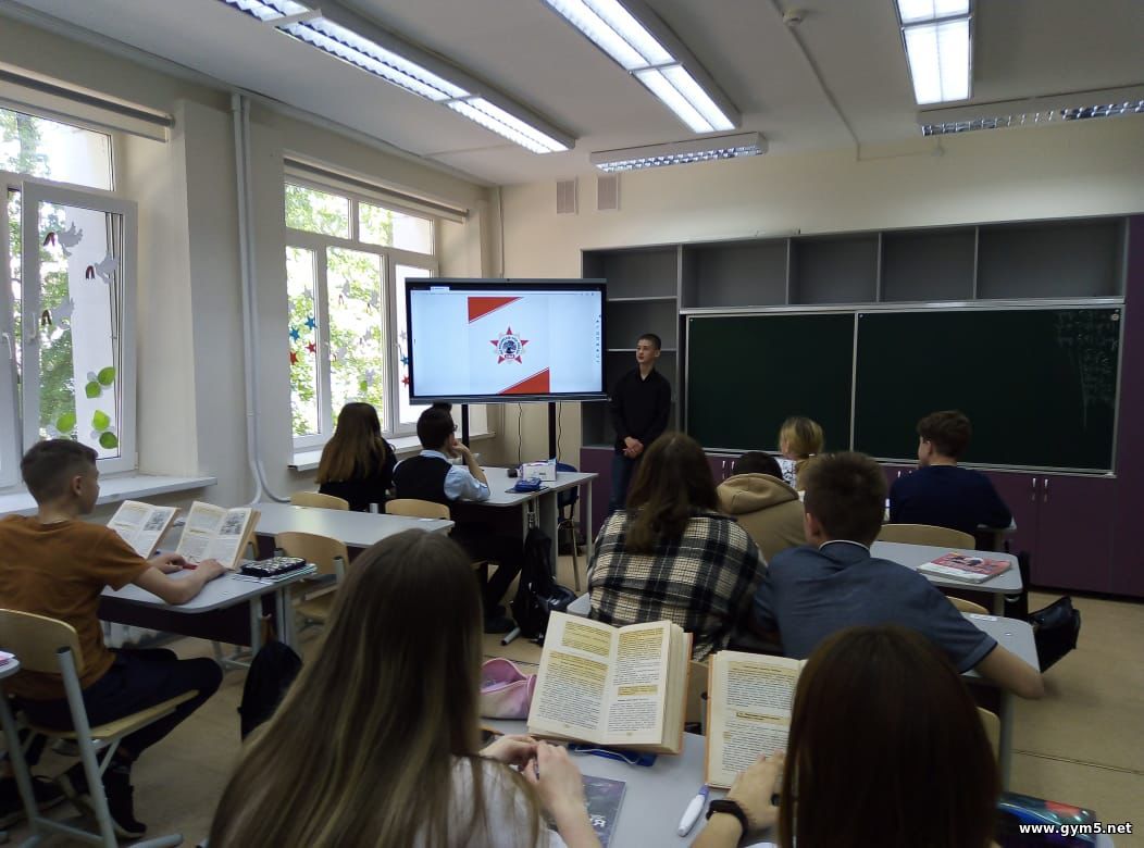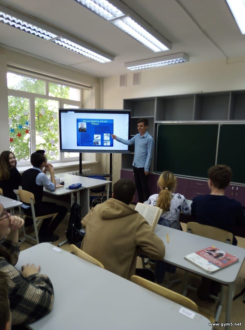 Урок Победы, в ходе которого были рассмотрены вопросы важности победы в Великой Отечественной войне. Школьники познакомились с городами-героями, узнали, какой вклад в победу внес каждый регион Российской Федерации. Педагоги напомнили учащимся о цене, которую пришлось заплатить русскому народу во время войны, и о значении грозных событий огненных лет для будущего всей планеты