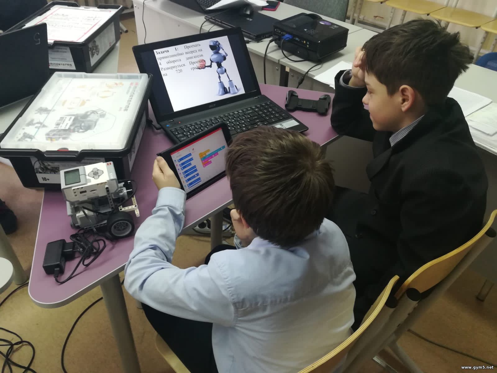 программирования и подробно изучили команды. Далее была поставлена задача: проехать прямолинейно вперёд на 4 оборота двигателя. Развернуться. Проехать на 720 градусов.