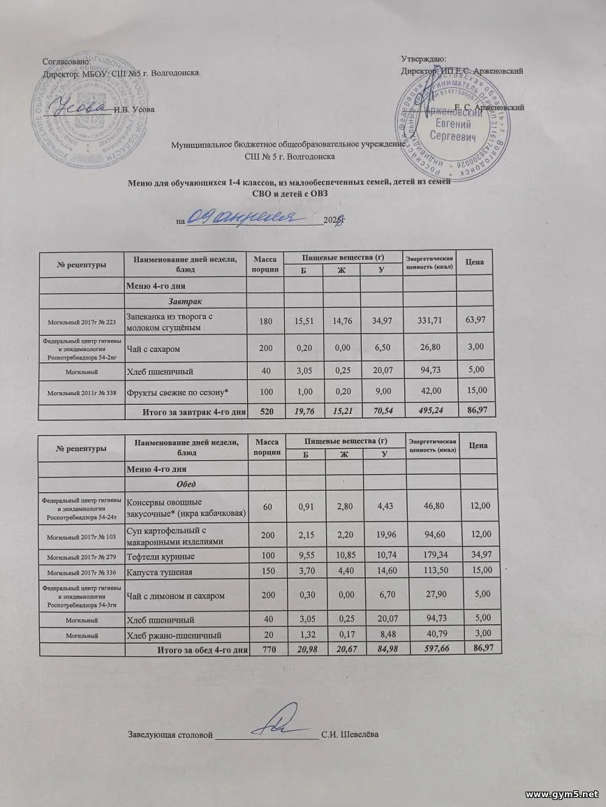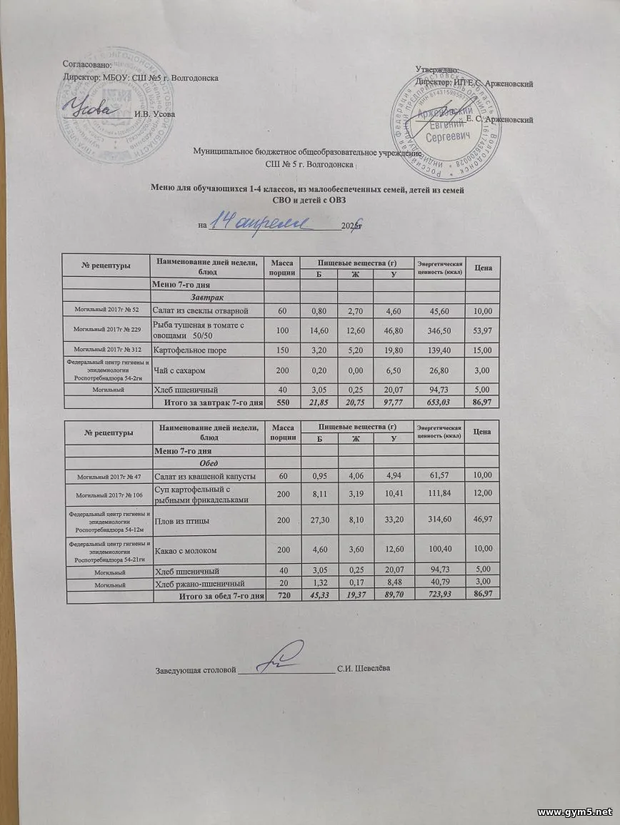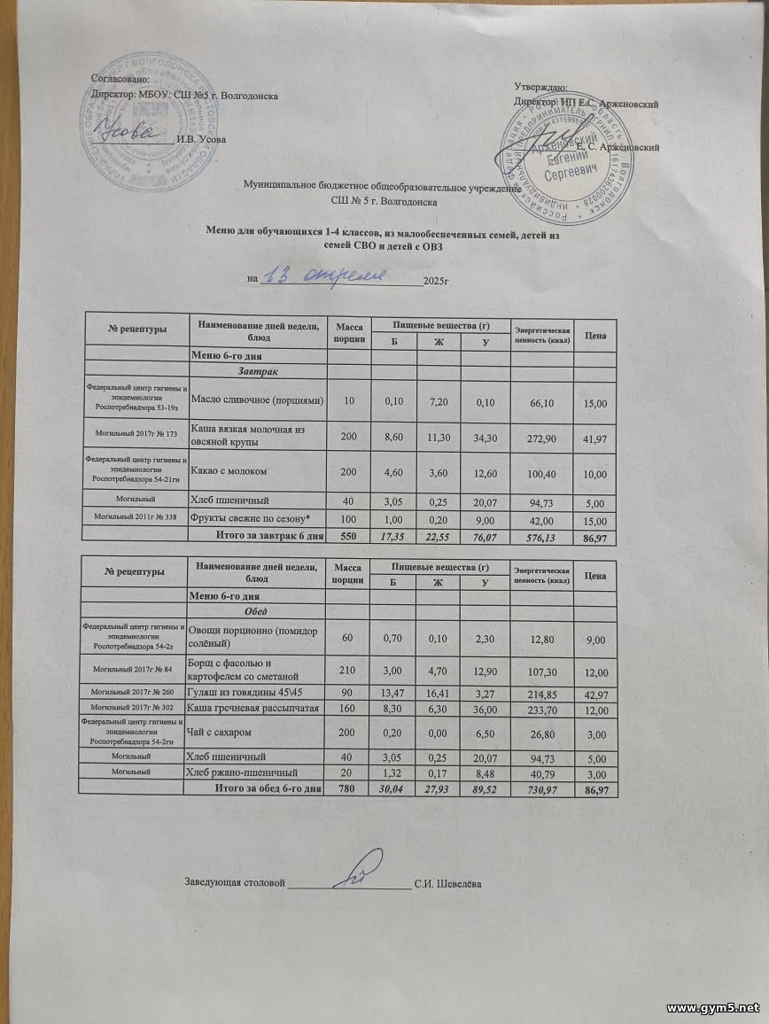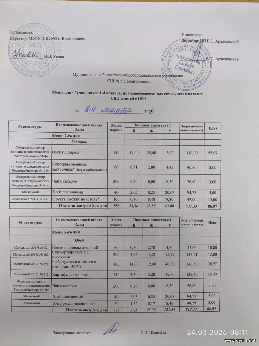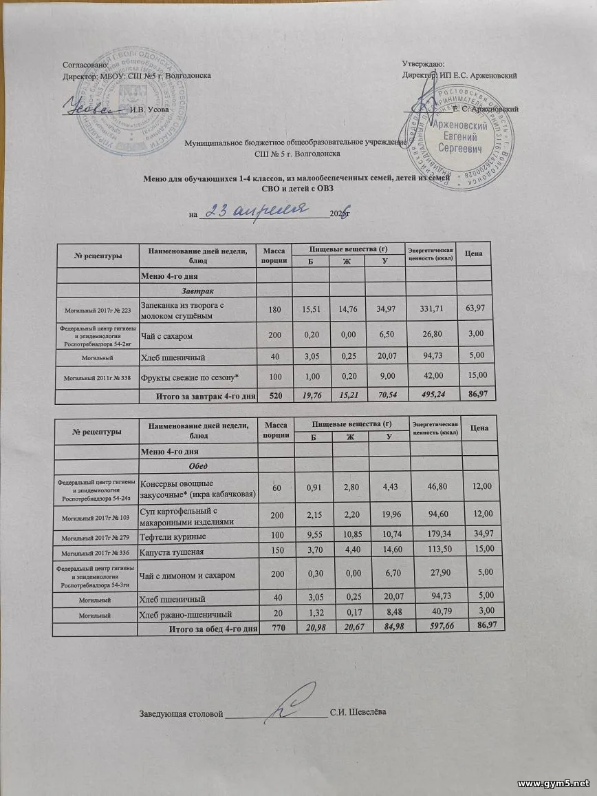Организатором питания в МБОУ СШ №5 г.Волгодонска является ИП Арженовский Е.С.